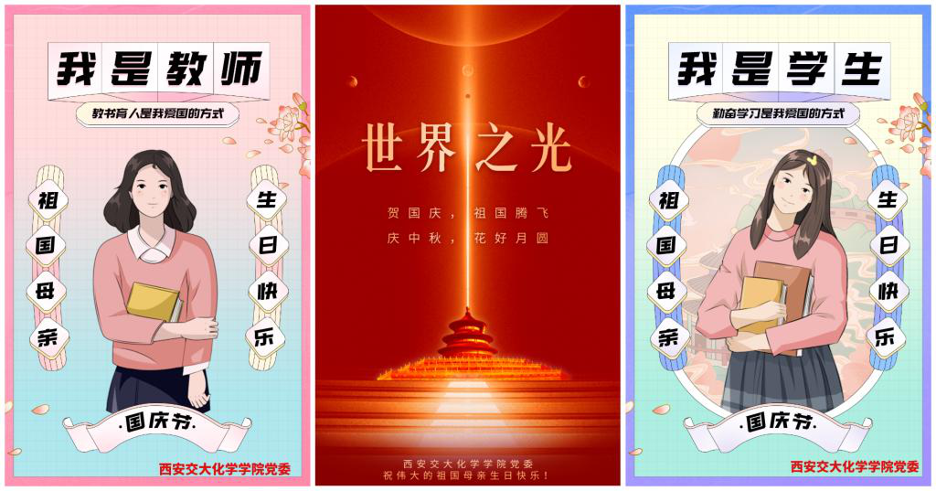那天,国庆与中秋遇到了一起,国与家装了个满怀。参与策划了学院“爱国的最佳打开方式”的主题活动。学院的老师同学们纷纷讲述了什么是爱国。“爱国情转化为报国行”;“将国家民族命运与个人奋斗联系在一起”;“用自己的言行影响引领更多人”……大家对爱国的理解彰显了以国为先,艰苦奋斗的西迁精神。这是每一个化学人,每一个西交人都深深铭记在心的宝贵精神。这种精神让人感动。