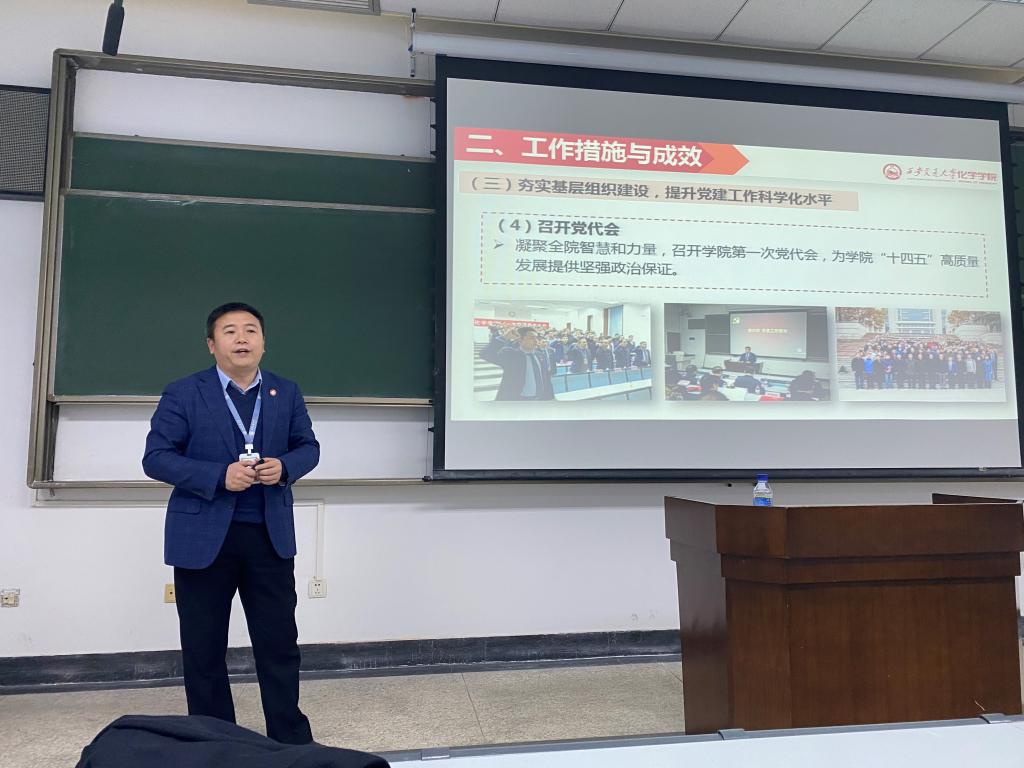张志成书记结合2020年的文件学习、寒假工作会议精神以及必赢唯一官方网站的实际情况,讲了题为《新平台新思路创新引领谋发展》的党课。首先,全面梳理了学院成立之后的半年所取得成绩。他指出2020年全院师生干得很辛苦,取得了有目共睹的成效,得到校领导的高度肯定和多次表扬,可以说这一年我们化学最高光的一年。2000年应用化学系成立,标志着交大化学由化学基础教学向教书育人职能的转变;2010年化学楼的启用,标志着交大化学有了独立的科研平台;2020年搬迁创新港,必赢唯一官方网站成立,标志着交大化学正式进入新发展阶段。十年磨一剑、十年一个台阶,下一个十年将是化学跨越式大发展的黄金十年。对此,学院师生充满了信心,学校也充满了期待。