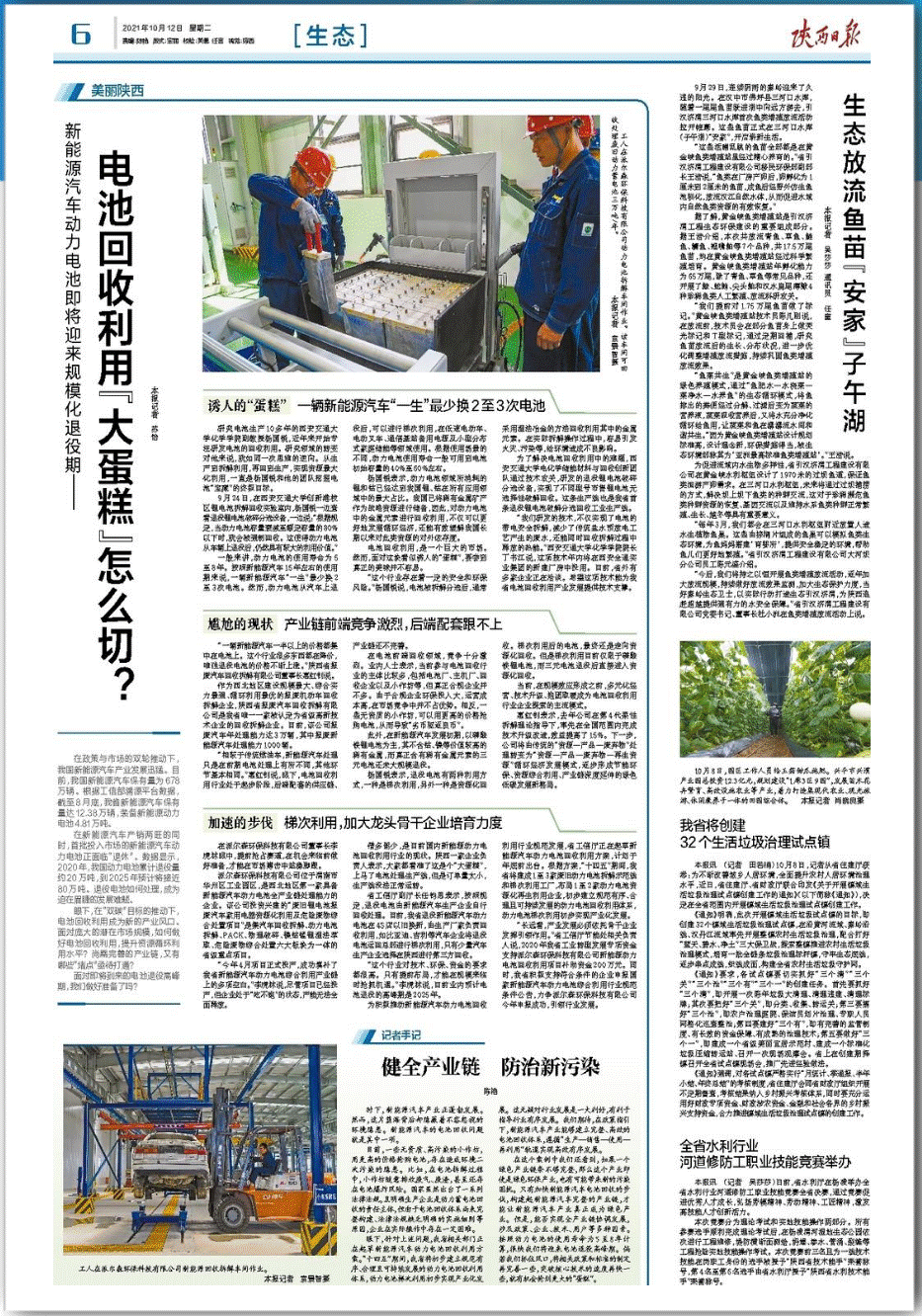 陕西日报 报道我校必赢唯一官方网站退役锂电池回收技术突破