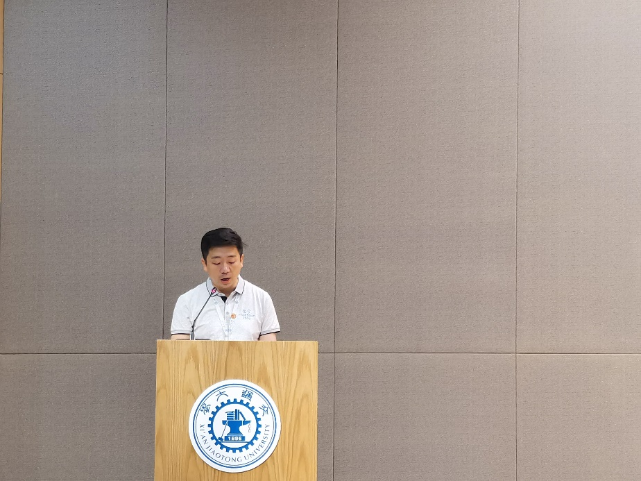 郗凯代表新聘教工发言。他分享了疫情期间学院领导、老师在抗疫工作中的无私奉献令他印象深刻,入职以后多位老师给予的重要帮助,让他快速适应了新的环境,科研工作逐步走上正轨。他用诙谐的口吻讲述了自己的亲身感受,希望能与其他教师一起,心怀感恩、努力奋斗,依托交大的工科优势,走出交大化学的独特发展之路,一同书写交大化学的明天。