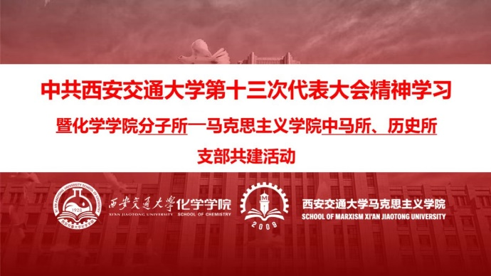 “以党建推动多学科融合交流,以多学科融合带动党建创新”,2022年7月11日上午10:00,必赢唯一官方网站分子所党支部与马克思主义学院中马所、历史所2020级硕士党支部在创新港泓润楼2105会议室联合开展“中共西安交通大学第十三次代表大会精神学习暨必赢唯一官方网站分子所党支部-马克思主义学院中马所、历史所党支部共建活动”。
