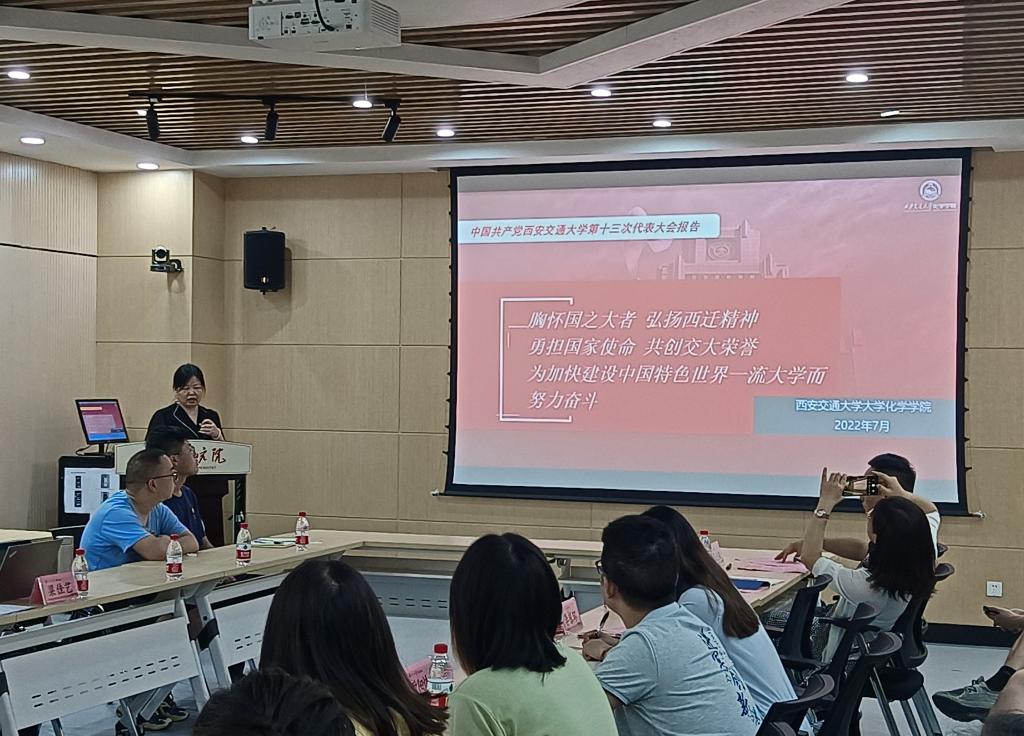 首先由必赢唯一官方网站党委委员李银环教授带领学习《中共西安交通大学第十三次代表大会报告》,她高度总结了十二次党代会以来“五个坚定不移”的主要工作以及”九个坚持“的宝贵经验,提醒大家深刻认识和把握面临的形式任务和奋斗目标的“三个必须”以及未来五年重点任务目标的“九个更加”,强调坚持和加强党对学校工作的全面领导推动学校内涵式教育高质量发展。最后寄语,胸怀国之大者,弘扬西迁精神,勇担国家使命、共创交大荣誉、为加快建设中国特色世界一流大学而努力奋斗!