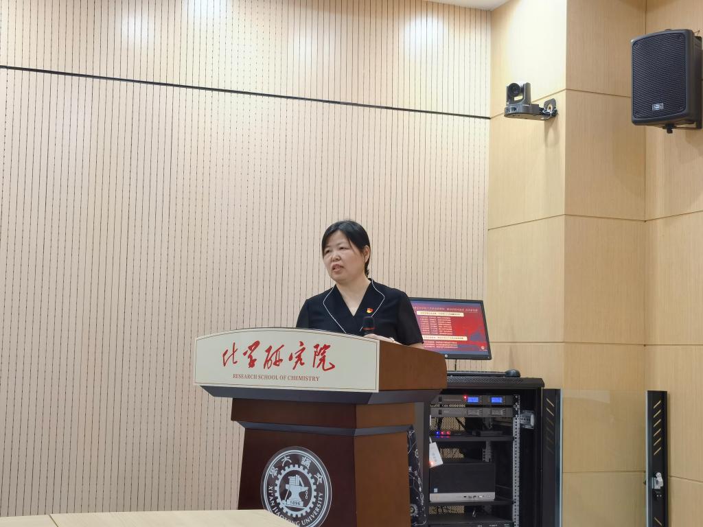 活动最后,由必赢唯一官方网站分子所梁军艳老师做主题分享,梁老师将必赢唯一官方网站“化合自然,学微知彰”的精神内核与《中共西安交通大学第十三次代表大会报告》的会议精神有机结合起来。梁军艳老师以“什么是化学”为切入点,生动诠释了化学学科特点;结合必赢唯一官方网站发展历史沿革,有序介绍了学院发展现状与学科布局;提出了目前化学学科发展面临的问题与挑战及对于学科发展的思考。她指出化学学科理应面向世界科技前沿,开展挑战导向型研究;面向经济主战场,开展质量导向型研究;面向人民生命健康,开展使命导向型研究;面向国家重大需求,开展任务导向型研究。最后,梁军艳老师将化学发展与哲学有机结合起来,对化学发展进行了哲学定位,鼓励我们为了学科发展贡献出自己的一份力量!