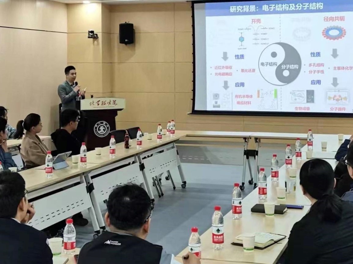 4月8日上午9时30分,天津大学孙哲教授以《有机共轭自由基的合成和应用》为题,分享了自己的研究方向和成果。共轭结构广泛存在于有机化合物当中,如有机染料、光电磁响应材料、导电聚合物、纳米碳材料等。本次报告对具有开壳电子结构的有机共轭自由基的设计、合成、性质研究和初步材料应用进行介绍和讨论。