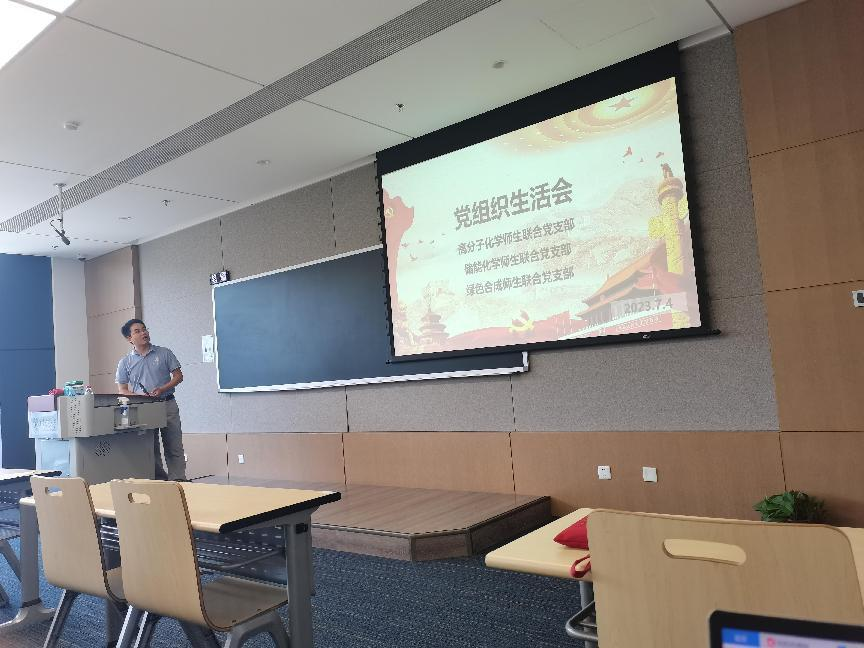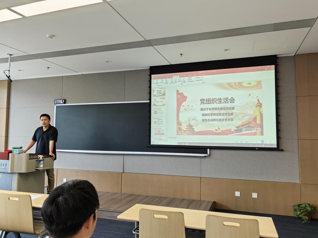 2023年7月4日必赢唯一官方网站高分子化学师生联合党支部、储能化学师生联合党支部、绿色合成师生联合党支部于泓润楼19-4110室召开六月党组织生活会。会议由绿色合成党支部书记刘乐老师主持,三个支部全体党员同志参与了此次组织生活会。严红昌副书记以“全面从严治党”为题,为师生党员同志讲授了一堂生动精彩、思想深刻的专题党课。
