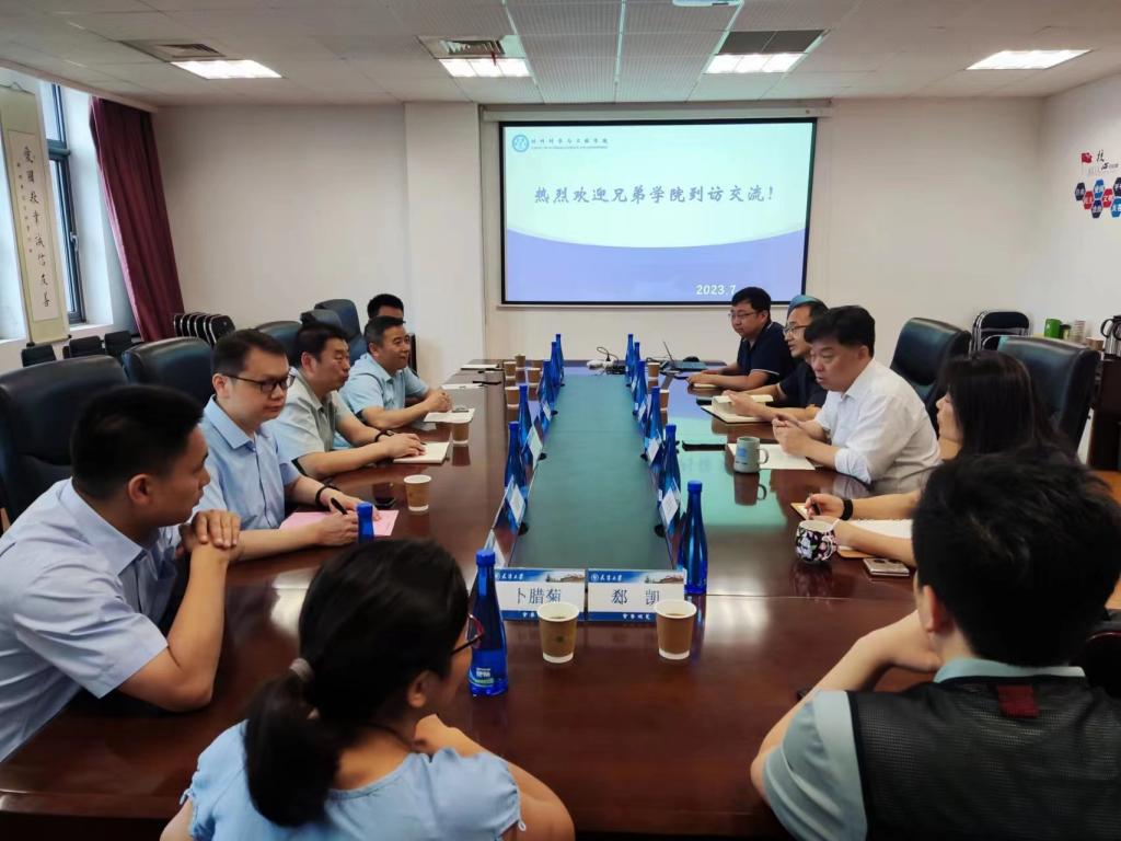 在天津大学理学院,天津大学理学院书记刘昌龙详细介绍了学院历史,天津大学理学院院长耿延候介绍了学科发展情况。调研团和天津大学理学院班子成员深入探讨了理科学科如何在工科院校发展的经验,双方决定联合探索出一条适合自身快速发展的路径。
