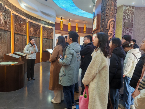 离开酿造车间,党支部来到了西凤酒文化馆。文化馆宛如一部立体的史书,生动地展示了西凤酒的发展历程。从三千多年前的殷商时期,西凤酒的前身“秦酒”便已诞生,到唐宋时期的鼎盛发展,再到明清时期的传承与创新,直至今日成为中国白酒行业的翘楚,西凤酒历经岁月的洗礼,始终坚守品质至上的理念,不断推陈出新。馆内陈列着大量珍贵的文物和历史资料,包括古代酿酒器具、名人诗词书画、各个历史时期的西凤酒产品等。党员们穿梭在历史的长河中,仿佛看到了古代酿酒工匠们辛勤劳作的身影,听到了文人墨客们对西凤酒的赞美之词。在一幅描绘唐代长安酒肆繁荣景象的画卷前,大家驻足良久,想象着当时西凤酒在长安城中的盛誉,以及它在社交、文化等方面所扮演的重要角色。