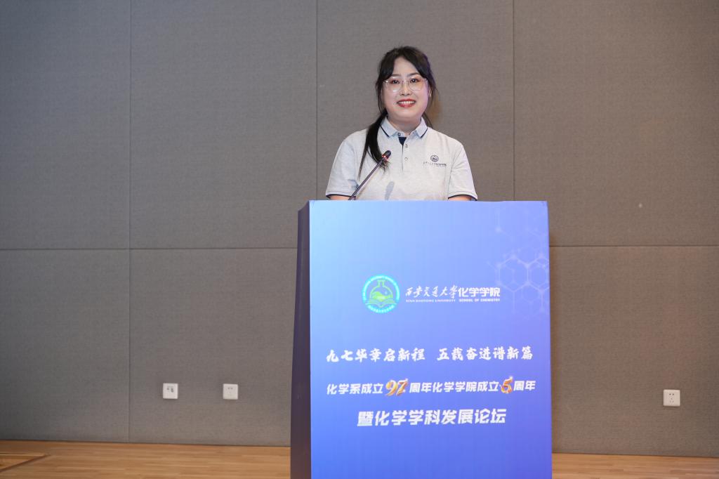 孙泽慧代表新入职青年教师发言。她引用“化合自然,学微知彰”的学科理念,表示要将个人追求与国家需求相结合,勇攀科研高峰,为“科技报国、创新强国”目标贡献力量。