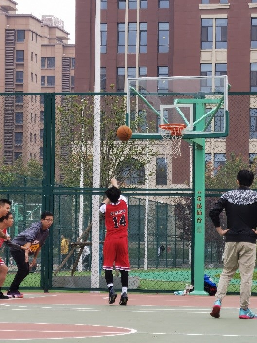 比赛以5V5篮球赛的形式展开,比赛全程分为上半场和下半场。参赛人员共计22名,其中参赛教师11名,分别是:肖春辉、洪涛、饶彬、胡明友、李静、梁仲帅、郭寅周、谭少博、丁书江、张彦峰、漆贺同等;参赛学生11名,分别是:苏宏哲、龚航、李宸辉、李卓、彭圣钧、王世新、王逸涵、王钰、王石、刘理民、王开腾等。赛前参赛队员们进行了充分的热身,比赛在裁判嘹亮的哨声中正式开始。高高抛起的篮球激起了大家的热情,比赛一开始参赛双方就迅速投入比赛,尽展赛场英姿。