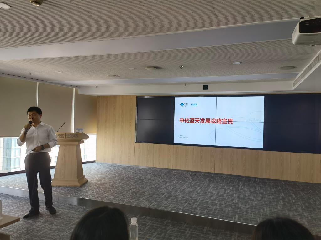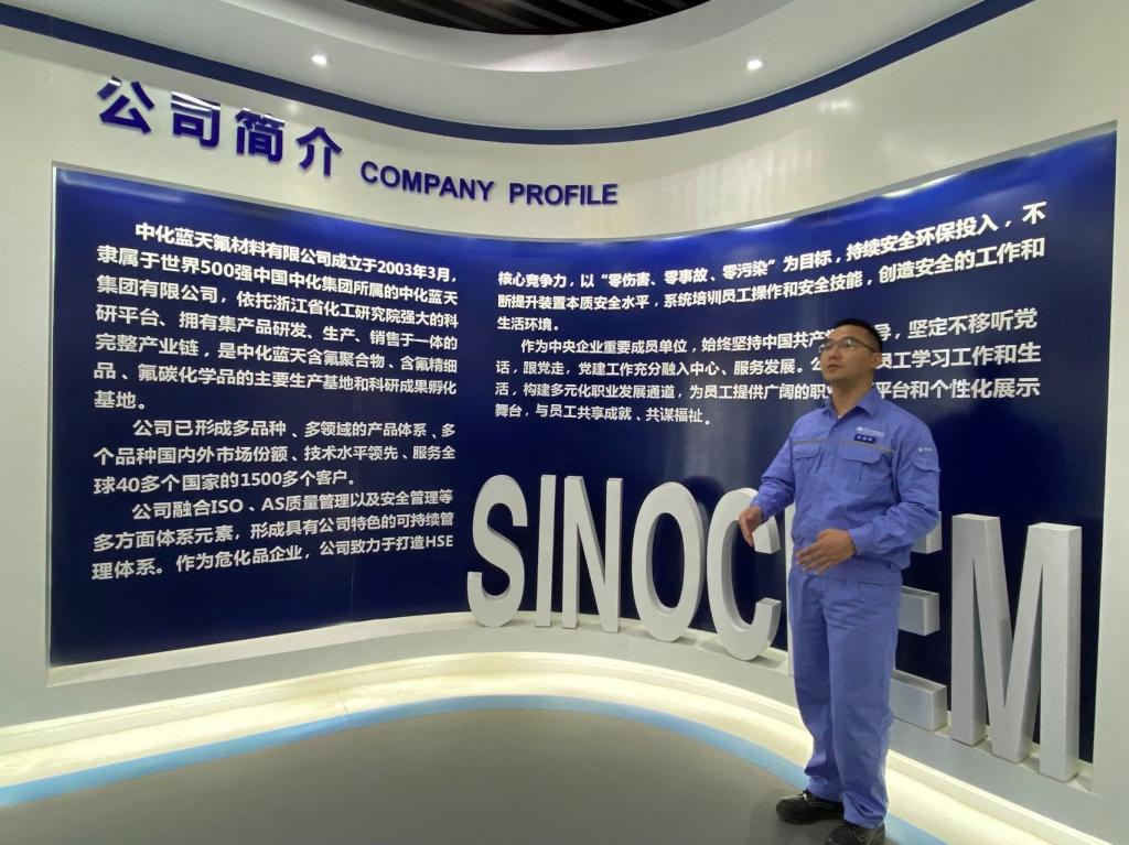 82日上午,实践团队一行10人到达杭州中化蓝天集团总部进行参观学习。中化蓝天人力资源部经理邵赛蓉首先对大家的到来表示热烈的欢迎并做了基本的安全知识分享。战略规划部副总经理魏继兴进行了中化蓝天发展战略宣贯的分享会,让同学们对中化蓝天公司的概况、研发产品、研发领域、创新平台等有了更深一步的了解,同学们进行了积极提问与热烈谈论,魏总认真解答了同学们的问题。会后,实践队员走进中化蓝天的数字展厅,在讲解员的带领下同学们对中化蓝天的企业认知更加深刻。